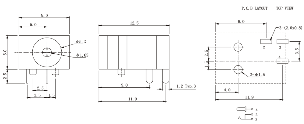 DC049Ф5.2(12.5*9*6)插件DC电源插座