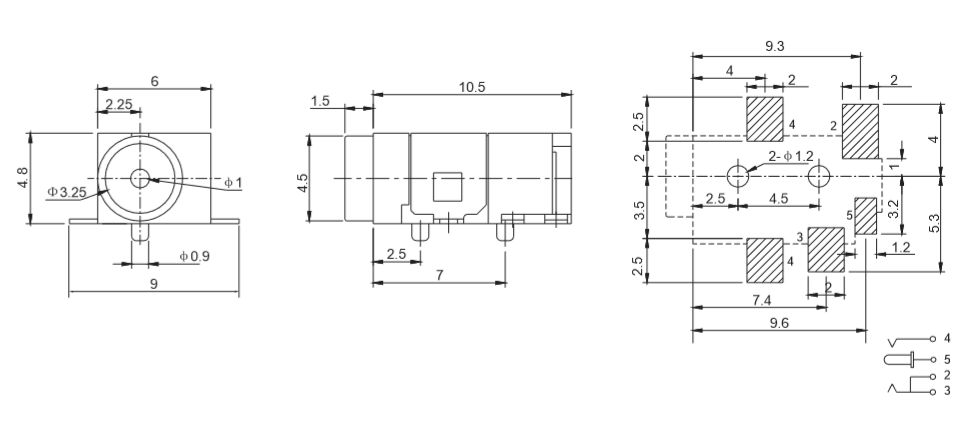 DC052Ф3.2 针芯/1.0(12*6*4.6)贴片DC电源插座
